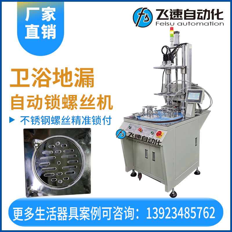 - 產品簡介: 該款產品適用鎖付衛浴地漏上的螺絲,該款螺絲機的效率在2pcs-4pcs左右,可以節省70%的人力,提高4倍生產效率,
